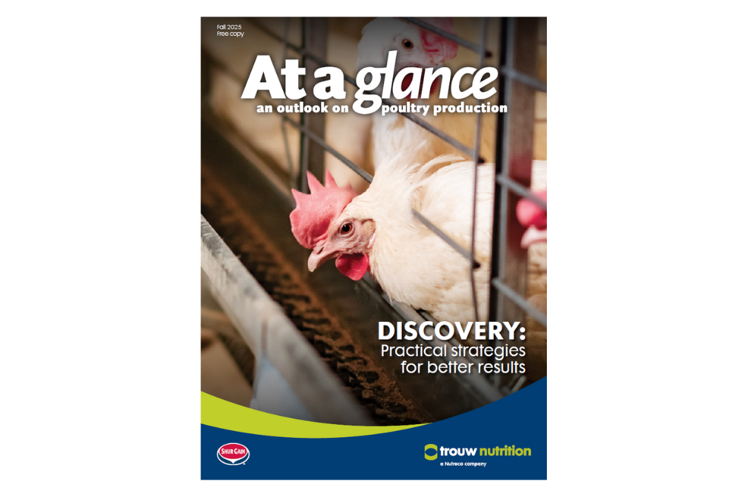 This issue of At a Glance highlights how Canadian poultry producers continue to rise above challenges with resilience and adaptability. It explores practical strategies for maximizing performance through management, including often-overlooked factors that impact broiler growth and efficiency. You’ll also find insights on feather pecking management, optimizing feed production with NIRS, and strategies to protect skeletal health, eggshell quality, and long-term productivity in egg-laying hens. Plus, learn how IntelEgg, our digital layer benchmarking tool, turns flock data into actionable decisions for optimized productivity.